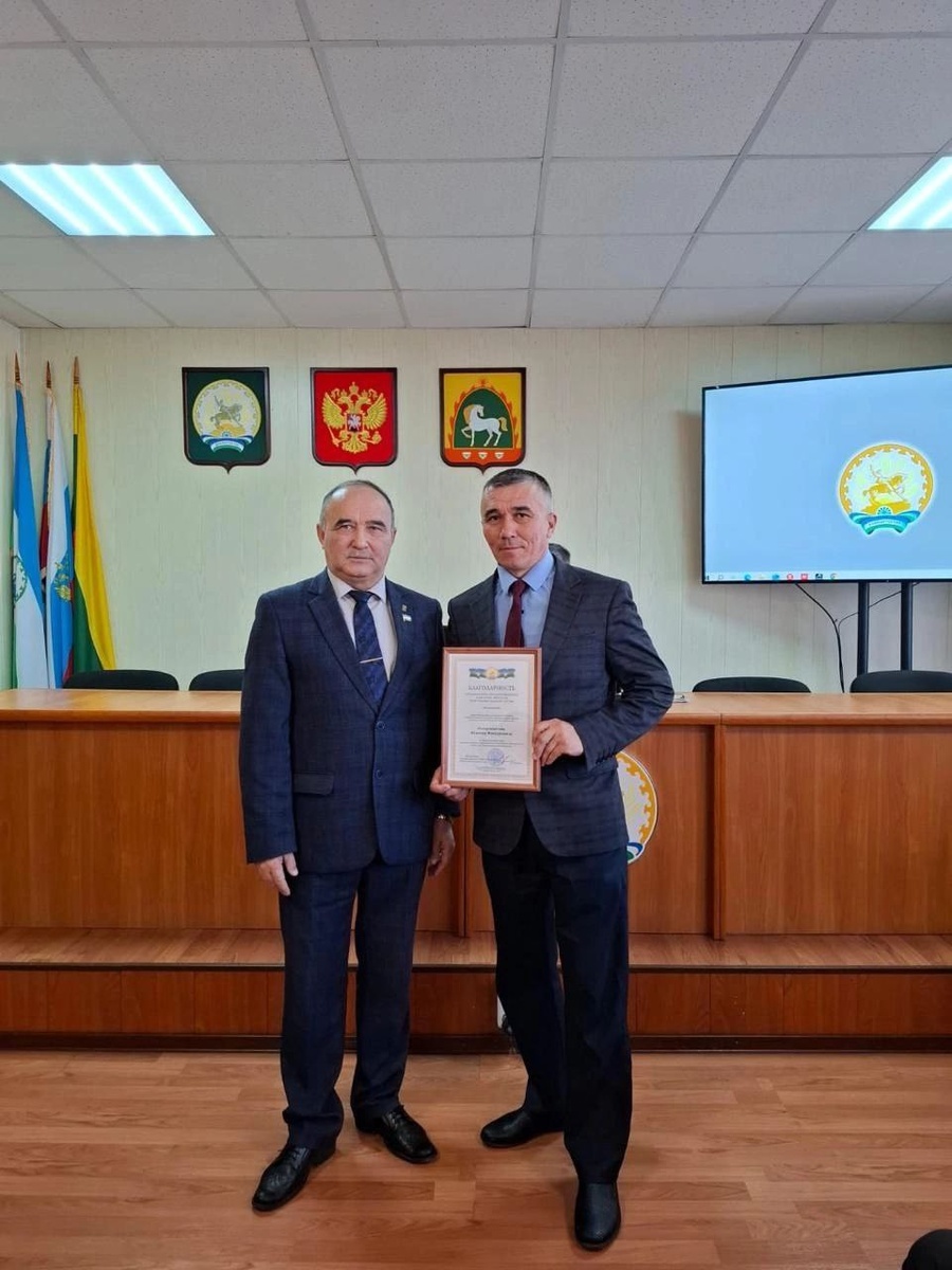 Баймаҡ районының Ишмөхәмәт ауылы хакимиәте башлығы Илнур Мансур улы Башҡортостан Республикаһы Ҡоролтай рәйесе Константин Толкачевтың Рәхмәт