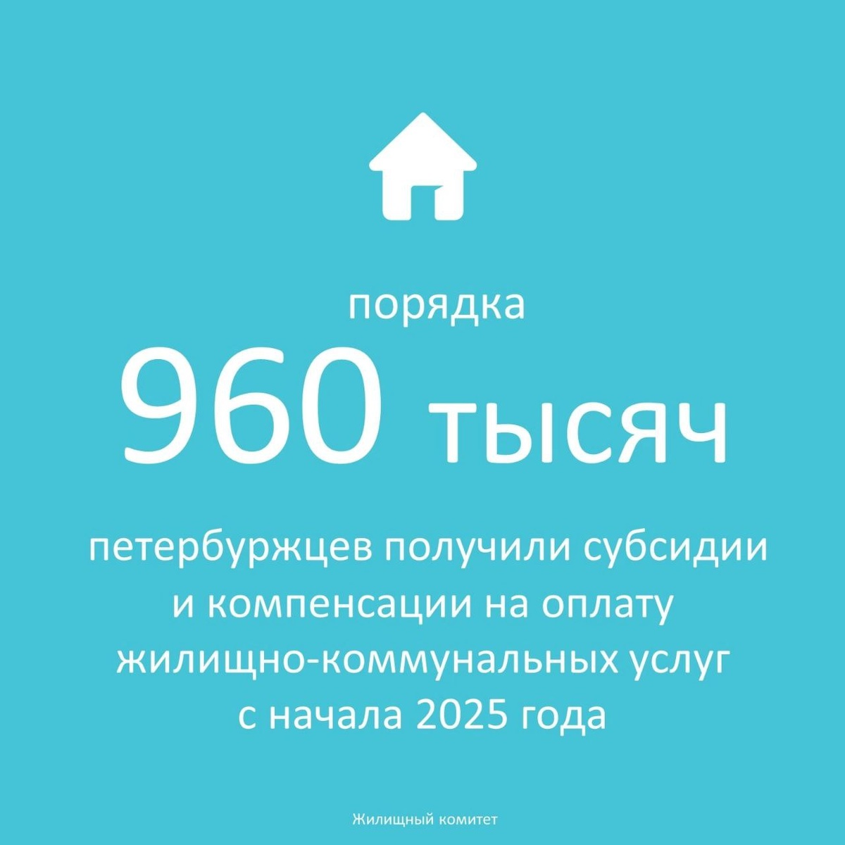 С начала 2025 года почти 960 тысяч жителей Санкт-Петербурга получили субсидии и компенсации на оплату жилищно-коммунальных услуг