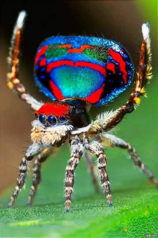 💡Пауки-павлины танцуют для привлечения партнёрши. Самцы расправляют яркие "хвосты" и совершают серию сложных танцевальных движений — как миниатюрные павлины.