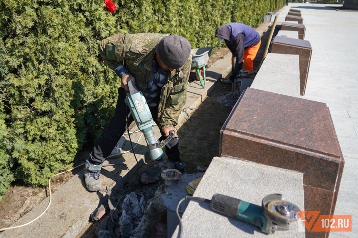 Волгоград в этом году с особым усердием и масштабом готовится к празднованию 80-летнего юбилея Великой Победы. Кроме того, уже совсем скоро город-герой примет международный форум «Великое наследие – общее будущее», который посетит Владимир Путин и белорусская делегация во главе с Александром Лукашенко. Как Волгоград готовят к визиту двух президентов - в фоторепортаже ИА «Высота 102». Мамаев курган начали готовить к наплыву посетителей еще задолго до того, как стало известно о визите в Волгоград Владимира Путина и Александра Лукашенко. В настоящее время на территории у подножия Мамаева кургана ремонты работы вступили в завершающую стадию. Специалисты приводили в порядок гранитные плиты, которыми вымощена площадь на нижнем ярусе мемориального комплекса. Также рабочие очистили лестничные марши и нанесли знаменитую надпись «За нашу Советскую Родину! СССР!». На входной группе мемориального комплекса «Героям Сталинградской битвы» левее от лестницы увековечена память о городе воинской славы К