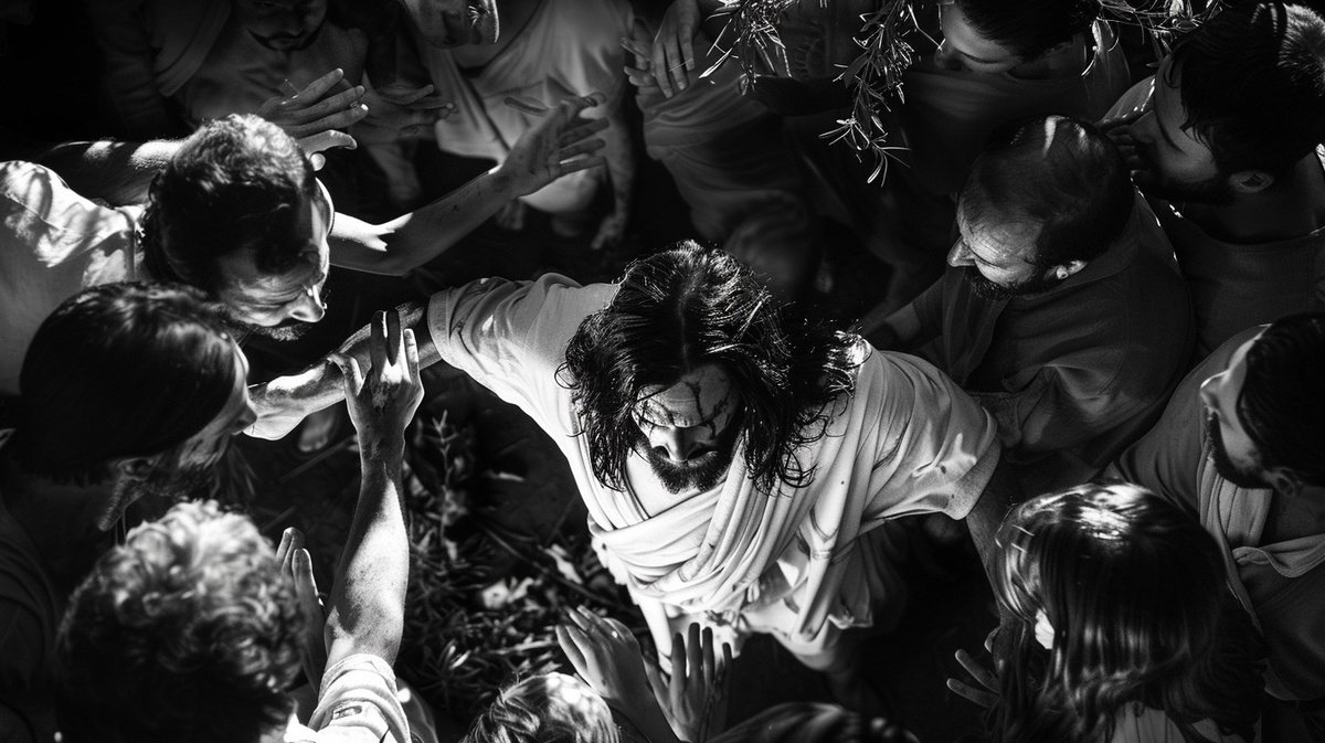 Создано на основе запроса: an extreme overhead view of Jesus being voilently taken by authorities from garden of gethsemane at midnight. They are shoving him and pushing him. They are being very cruel to him. Realistic photo style, black and white, dramatic lighting, shallow depth of field, emotional, cinematic shadows, moonlight filtering through trees, RED Komodo 6K realism --- Автоперевод: Чрезвычайный накладной взгляд на то, что Иисус, в полночь, в полночь, вплоть до того, что Иисус принимает власти из Гефсимании. Как тебе такая генерация? 🤔 https://dzen.ru/id/65c0c65c86e4f837c27b24d7 #ИИ #AI #нейросеть #midjourney #art