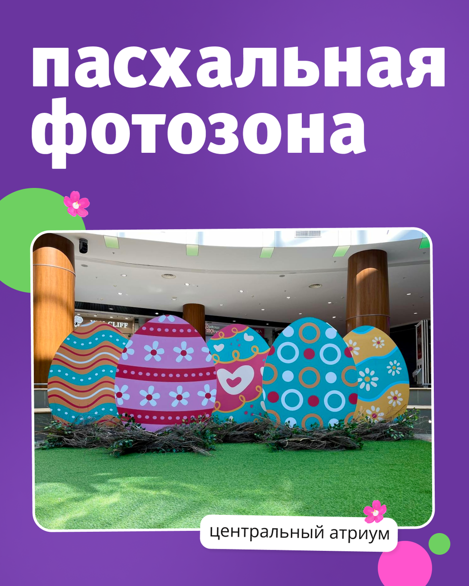 Приближается один из самых светлых праздников в году – Пасха. Магазины ТРЦ «Акварель» уже готовы встречать этот чудесный день, а в центральном атриуме появилась праздничная пасхальная фотозона! Простоит она до конца этой недели, 20 апреля – последний шанс сделать классные фотографии для себя и своих социальных сетей (не забудьте отметить наш торговый центр)
