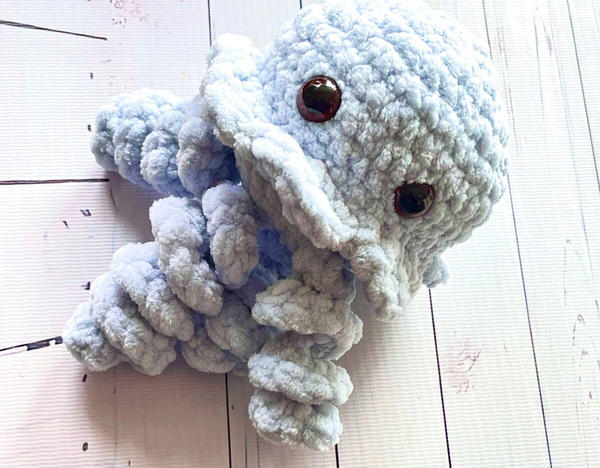 Пряжа velluto 65-70гр, крючок 4,5, наполнитель синтепух или холлофайбер Условные обозначения: КА- кольцо амигуруми СБН-столбик без накида ВП- воздушная петля Пр- прибавка Уб- убавка ССН- столбик с накидом (6)-количество столбиков в ряду (...)*6- повторить 6 раз Начинаем вязание с донышка медузы. 6 СБН в КА 1 ряд- 6пр (12), в качестве маркера используем нить 2 ряд- (1сбн,пр.)*6 (18) 3 ряд- (пр,2сбн)*6 (24) 4 ряд-(3сбн,пр)*6 (30) Щупальца Длину щупалец можно связать разной длины, а можно сделать одинаковыми. В моем варианте связано 4 щупальца, 1 на 20 вп,3 щупальца на 15вп. Набрать 15 ВП, развернуть вязание и вязать по цепочке, в каждый столбик провязывая по 3 ССН. Можно провязывать по 2 ССН, тогда спиралька будет заворачиваться не так круто. Крепим щупальца к донышку. Протягиваем кончик нитки, которой начинали вязание сквозь донышко на изнаночную сторону, отступить два столбика и протянуть кончик нити,которой закончили вязание на изнаночную сторону, связать нити между собой на изнано