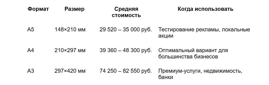 - А3 (297×420 мм) — 82 550 руб. Почему стоит выбрать: самый большой охват при оптимальной стоимости. • 162 стенда в 62 домах