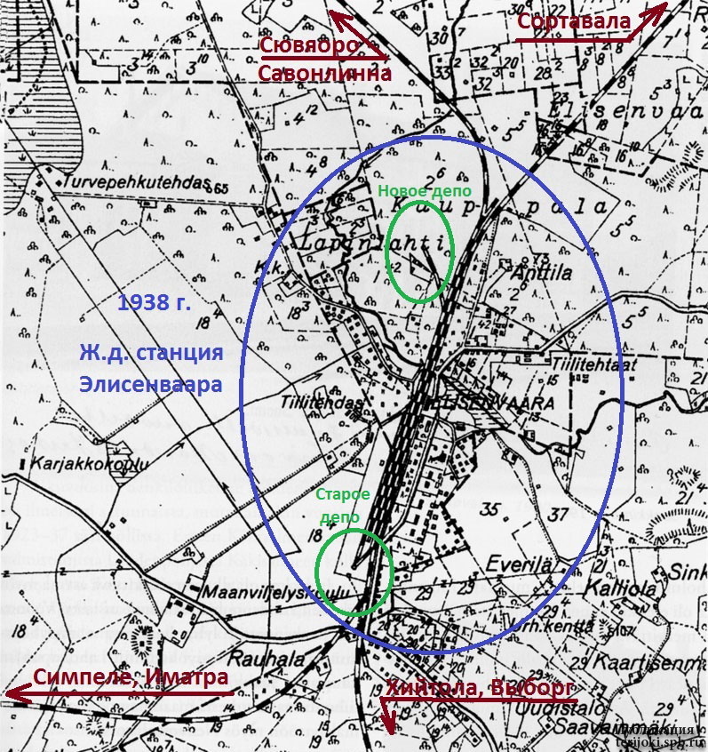 Так как новая линия из Иматры подходила к Элисенвааре с юго-запада, и её трасса примыкала к станционной площадке как раз в том месте, где находилось старое паровозное депо, его пришлось ликвидировать, но это не вызвало осложнений в эксплуатационной работе – новое депо вполне справлялось с увеличившейся нагрузкой. Известно, что в 1930-е г.г. к депо Элисенваара были приписаны, в частности, паровозы серии H2 №№ 322, 323 и 324; H6 № 510; K5 №№ 866, 871, 872 и 873. Возможно, этот перечень неполный.
