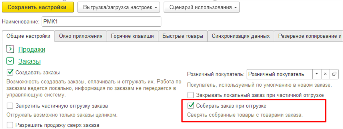 В программе «1С:Управление нашей фирмой» начиная с версии 3.0.11 добавили возможность контролировать количество отгружаемых товаров по заказу. Для этого в настройки РМК добавлена опция «Собирать заказ при отгрузке», при включении которой в момент отгрузки по заказу активируется режим сборки. Визуально режим выделен желтым цветом, рядом с " Количеством» добавляется колонка «Количество собрано». Сборщик добавляет товар кнопками «+», «-», вводом с клавиатуры, сканированием штрихкода или вводом с цифровой клавиатуры. Если собранных товаров меньше, чем в заказе - они выделяются красным цветом. Предусмотрена возможность отключения режима сборки из РМК и оформления сверх заказа. При переходе к оплате, если собранное количество отличается от количества корзины, можно: «Пропустить и оплатить», «Вернуться к сборке», «Изменить состав». _____________ Источник: 1С для эффективной торговли Следите за новостями 1С и торговли в нашем Telegram-каналe.