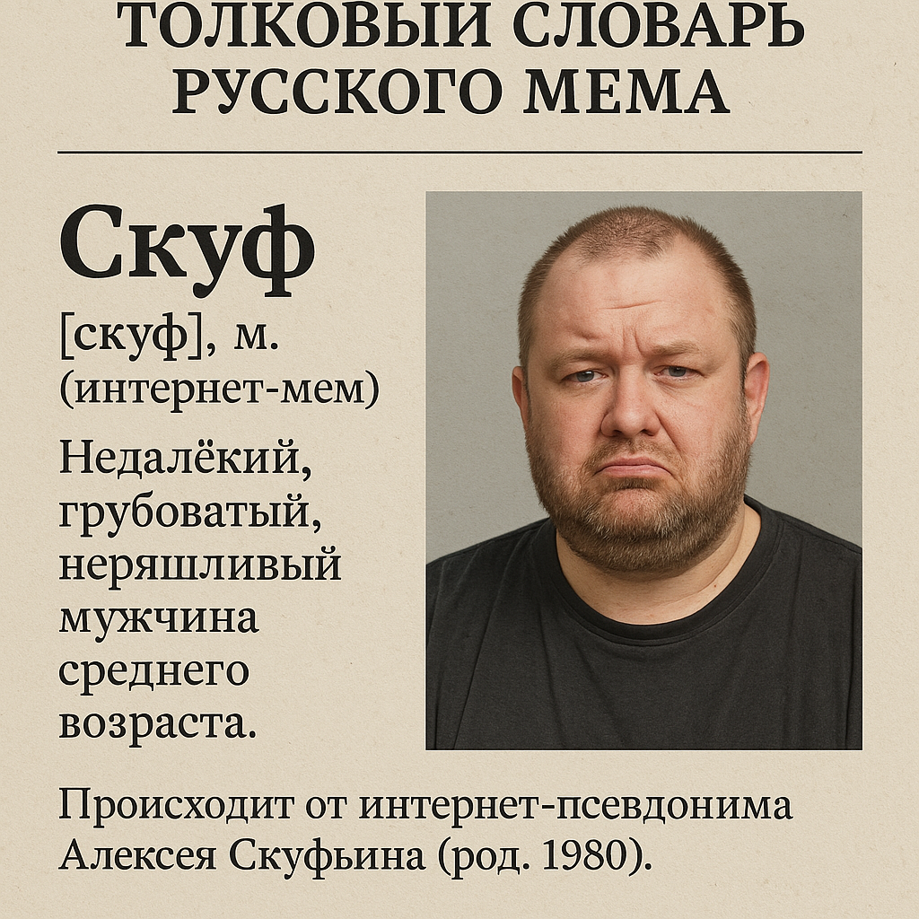 Удивительная история произошла на днях. Я наконец узнал всю правду о слове «скуф». А помог мне в этом мой любимый чат-бот зимы — Mistral. Работает с полной отдачей, как любой изголодавшийся по труду индивид после январского простоя. Готов обсуждать смысл жизни и чайные церемонии на базе GPT уровня «почти». Хотя нет, вру. На самом деле Mistral мне не помог. Французский негодяй оказался так себе следопытом. Как, впрочем, и все остальные нейросети. Ни одна не смогла правильно ответить на, казалось бы, простой вопрос: от какого английского слова произошёл тот самый «скуф», который уже давно обитает в русском интернете? Представляете, оказалось, что это вовсе не английский. Не французский. И даже не ваша любимая латынь, которую вы предпочитаете вставлять, когда хочется казаться умным. Это слово целиком и полностью русское. И даже больше — фольклорное, интернет-фольклорное. Живое. Из недр самого Двача. А виновник, так сказать, отец слова — вот он, на фото (которое, естественно, вы уже видели