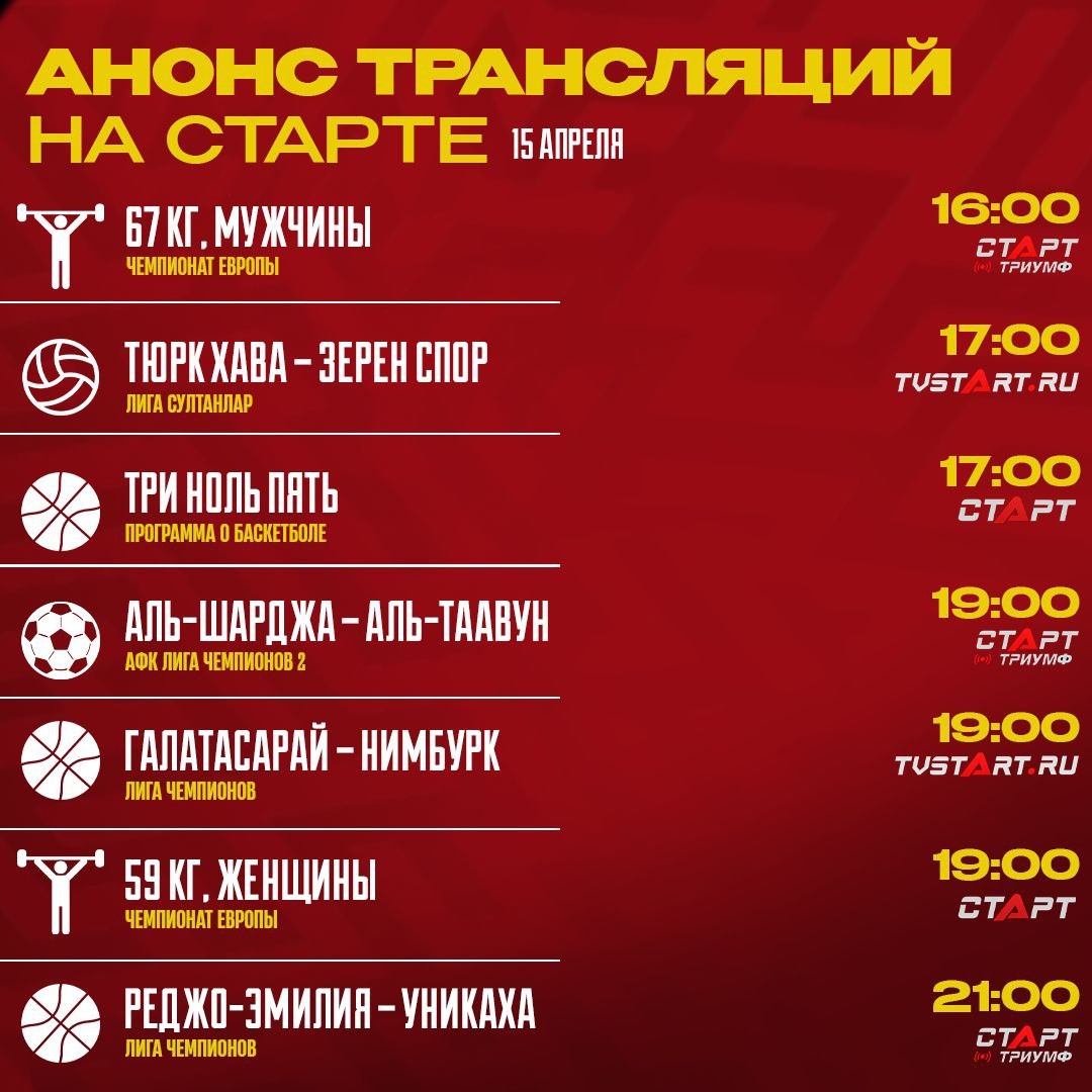 🍿📺 Вторничное разнообразие трансляций на TVSTART.RU! Сегодня в эфире ещё две весовые категории на тяжелоатлетическом Евро. Понаблюдаем, займёт ли «Зерен Спор» Елизаветы Кочуриной пятое место в Лиге Султанлар. Не забываем про еженедельную программу «Три ноль пять» и ответные матчи 1/4 финала Лиги Чемпионов. Также узнаем первого финалиста АФК Лига Чемпионов 2. Такова план на день, оставайтесь на TVSTART.RU 🖥 🛒 Наше приложение в Google Play (вне РФ) 💙 Наше приложение в RuStore (для РФ) 🛒 Наше приложение в App Store
