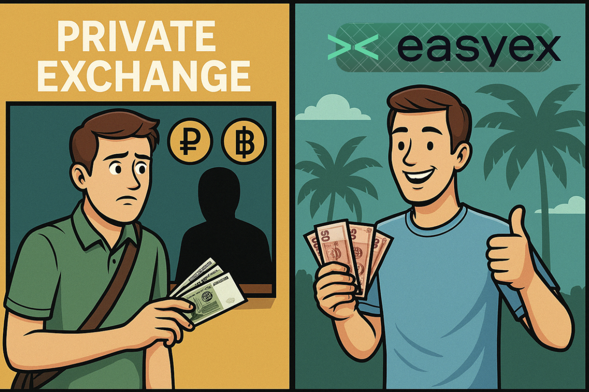 Когда речь заходит об обмене валюты в Таиланде, особенно для туристов и экспатов, нередко возникает соблазн «сэкономить» и воспользоваться услугами частных менял на улице или по знакомству в мессенджерах. Но насколько это безопасно? И действительно ли курс лучше, чем в официальных обменниках? Давайте разберёмся: – Кому доверять в Таиланде? – Какие риски у частных обменников? – И какая альтернатива работает на 100% надёжно и выгодно? На первый взгляд всё кажется просто: 🤝 Встретились – передали деньги – получили баты. 💬 Часто «сарафанное радио» подталкивает к таким сделкам: «у него выгодный курс, давно работает, все меняют». Но реальность такая: 1. Нет никаких гарантий Если что-то пойдёт не так — обратиться будет некуда. Деньги передали, батов не получили? Всё. Ни чека, ни переписки с реквизитами. 2. Риск получить фальшивые купюры Даже в банках попадаются фальшивки, что уж говорить про менял с местного чата. 3. Возможен «развод на курсе» в последний момент Вам пообещали один курс, а н
