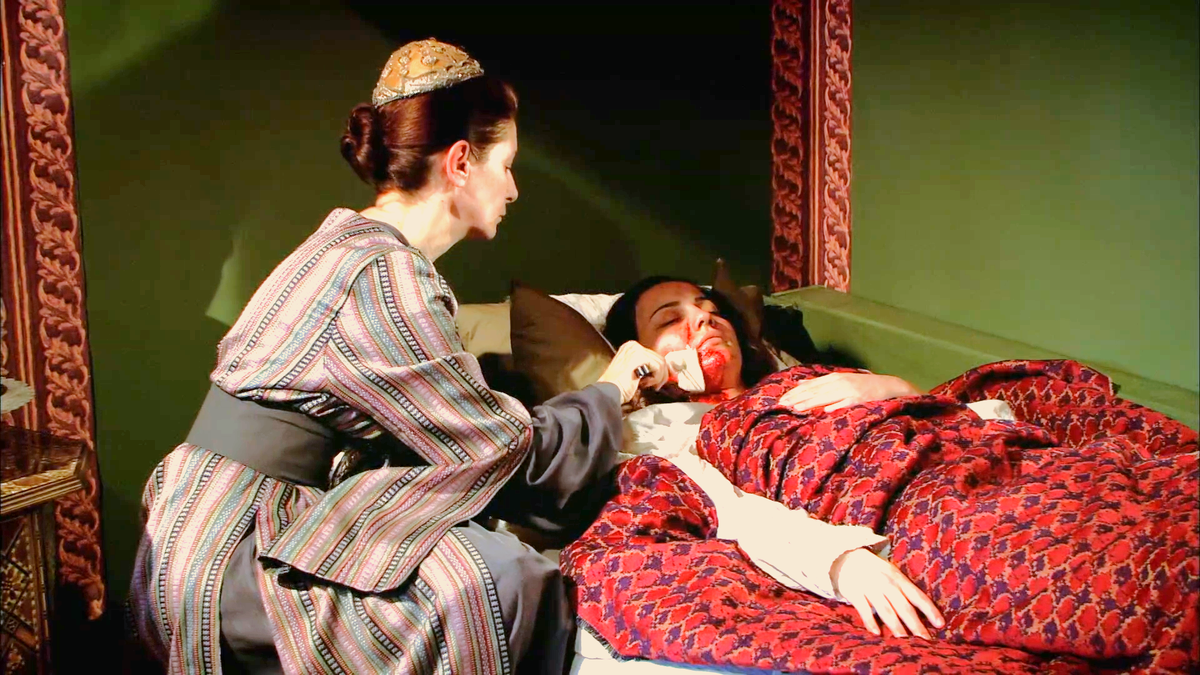 Лекарша подходит изучать руки Айше. Ведь Айше только что держала отравленный мех!