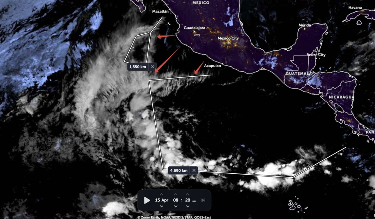 Долго я смотрел на это дело и не сразу понял, что тут происходит. В общем, трассируется плита Кокос с юга и запада, а в месте примыкания к плите Rivera у Мексики произошло смещение стыка плит на юго-запад. Также полностью трассируется плита Rivera. Картина в целом допускает вероятность землетрясения М6-7+ в течение 9 дней (особенно в зоне у стыка плиты Кокос с плитой Rivera). P.S. а если сюда уйдет энергия с Кокоса, то и до М8 может дотянуть... ===== I looked at this case for a long time and did not immediately understand what was going on here. In general, the Cocos plate is traced from the south and west, and at the junction with the Rivera plate in Mexico, the plate junction shifted to the southwest in the clouds. The Rivera plate is also fully traceable by CSTI. The overall picture allows for the probability of an earthquake of M6-7+ within 9 days (especially in the area at the junction of the Cocos plate with the Rivera plate).