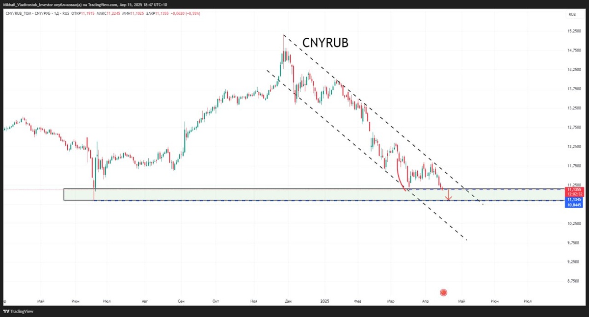CNYRUB ломает мартовские низы, опустился до минимума с июня 2024г