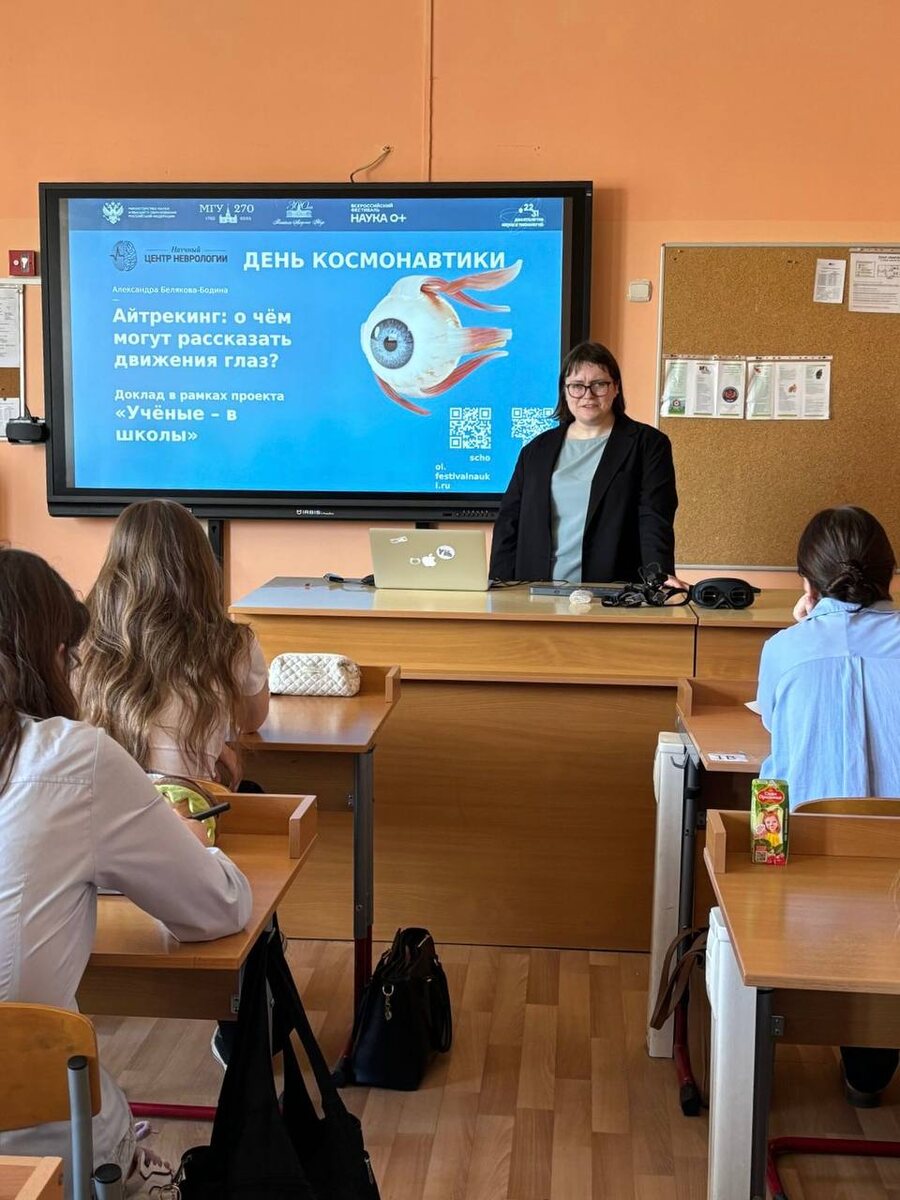 ⭐️Всероссийская акция «Учёные - в школы» В гостях у десятиклассников - младший научный сотрудник научного центра неврологии Александра Игоревна Белякова-Бодина. Тема встречи: «Айтрекинг: о чем могут рассказать движения глаз?». 🗣️Александра Игоревна поделилась историей своего пути в науку, рассказала, из чего состоит работа учёного и провела увлекательную лекцию об особенностях движения глаз. Выступление вызвало большой интерес и массу вопросов от ребят! 💐Благодарим Александру Игоревну за увлекательное занятие! #ШколаВоплощающаяМечты #Школа152 #ДОНМ