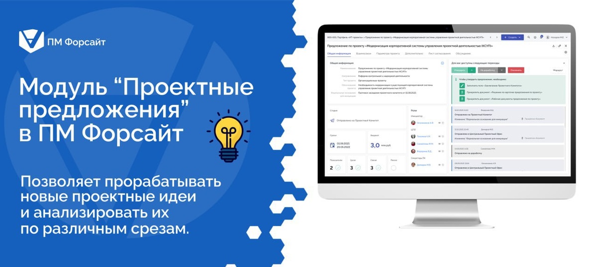 💡Проект не всегда возникает как инструмент для решения поставленных задач. Часто он начинается с идеи. Важно прорабатывать все идеи, рождающиеся в компании. Это мотивирует команду и позволяет находить полезные инсайты. Те идеи, которые требуют запуска проектов, оформляются в форме проектных предложений (инициатив). 🚀 Модуль «Проектные предложения» в ПМ Форсайт позволяет: ✅Регистрировать в рамках единого ресурса проектные предложения по регламентированной форме; ✅Настраивать маршруты согласования проектных предложений для обеспечения принятия по ним управленческих решений; ✅Принимать решения по согласованию предложений: дорабатывать, отклонять или открывать проект с помощью голосования; ✅Автоматически формировать проекты на основе утвержденных предложений; ✅Анализировать предложенные проекты по различным срезам. Получить демо-доступ https://pmforesight.ru/demo/ #ПМФорсайт #ИСУППМФорсайт #ИСУП #цифроваятрансформацияпроектногоуправления #проектноеуправление