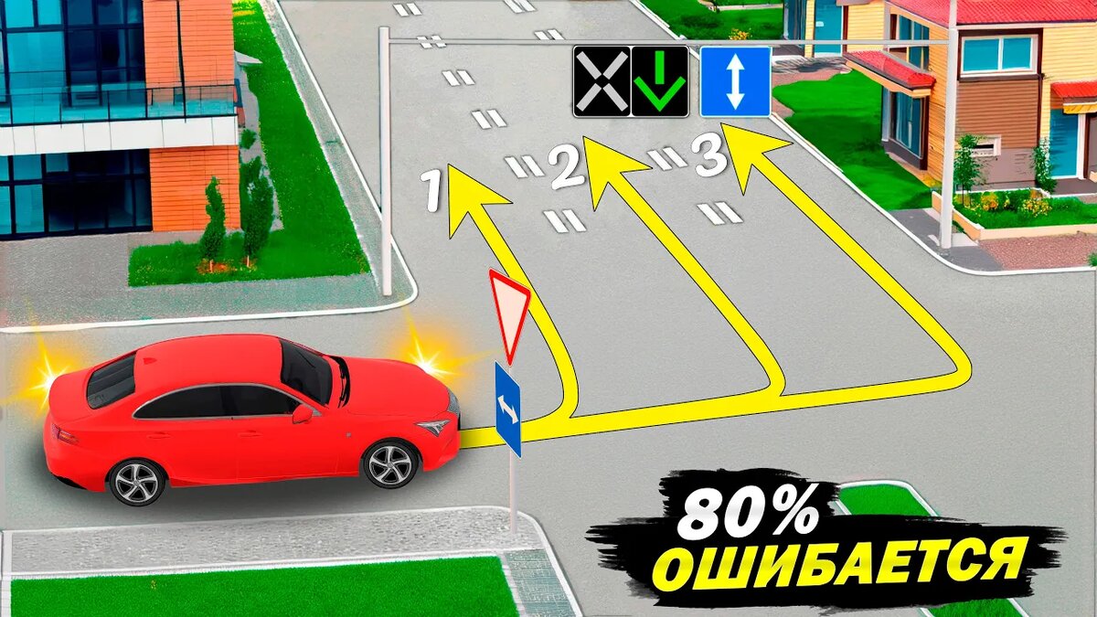 Всем привет, уважаемые автолюбители! Мы продолжаем цикл разборов интересных дорожных ситуаций. Сегодня мы разберём непростую задачу — правильно ответить на неё удалось лишь 20% предварительно опрошенных! Предварительные опросы я провожу в своём Telegram-канале, там регулярно выходят новые и, главное, оригинальные задачи на тему ПДД. Подписывайтесь и решайте задачи вместе! А в данной задаче необходимо выяснить, По какой траектории разрешено повернуть налево водителю красного автомобиля? На выбор даны следующие варианты ответа: Вариант №1 — только по траектории 1. Вариант №2 — только по траектории 2. Вариант №3 — только по траектории 3. Вариант №4 — по траекториям 2 и 3. Вариант №5 — по любой траектории. Вариант №6 — ни по одной траектории. Правильный ответ вы найдете после разбора задачи, но не спешите в него подглядывать. Попробуйте самостоятельно решить задачу, а лишь потом сверяйтесь с правильным ответом. На картинке с заданием мы видим красный легковой автомобиль у перекрёстка, на к