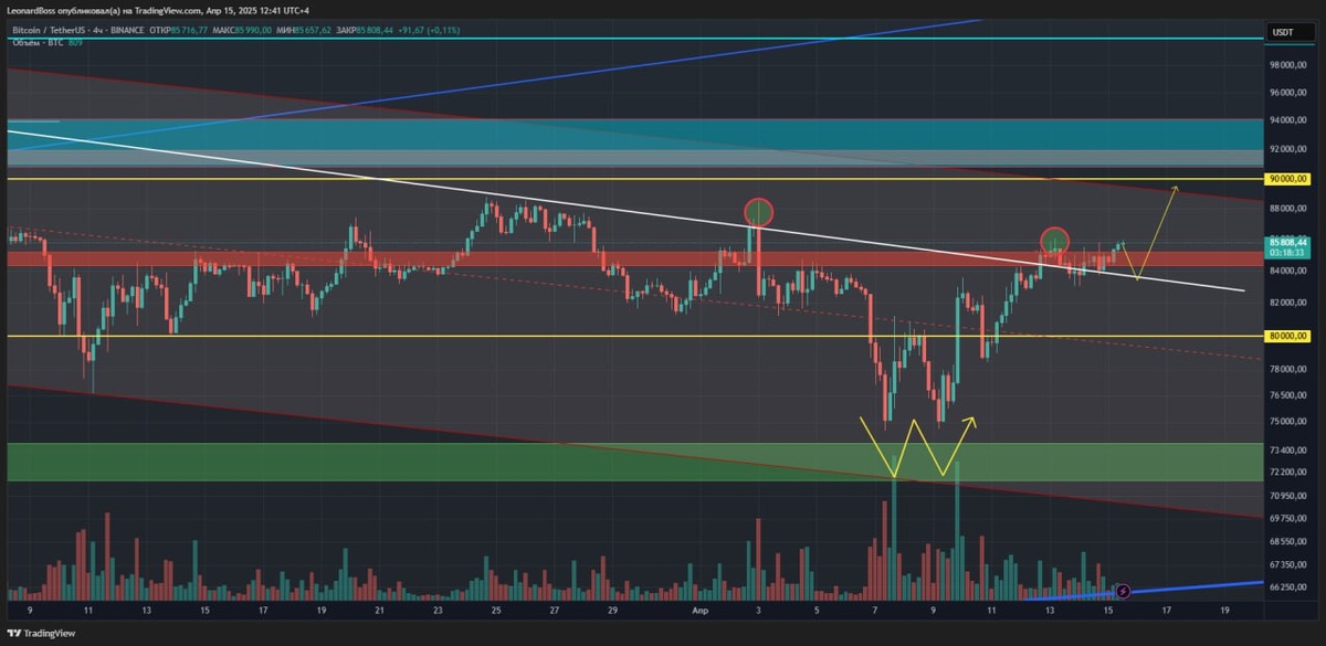 В ответ на пост #BTC 🕯Локально🕯 ⚠️Коллеги, всем привет! Биток продолжает болтаться в зоне сопротивления, хотя уже и находится выше промежуточной трендовой. Однако, наш старый знакомый блок, как видим, продолжает быть достаточно крепким сопротивлением!! ⚠️При этом, мы в текущей ситуации мы имеем лишь подтверждение прежней гипотезы, которая продолжает отрабатывать. Стоит взглянуть на левую половину графика и сразу становится понятно, насколько эта зона важна для рынка!! ⚠️Рынки продолжают перерабатывать недавний вал новостей и неоднозначных событий, поэтому перестал реагировать на казалось бы важные чьи-либо высказывания и прогнозы. На самом деле, это нормальная усталость от бесконечного FUDa и рукотворных событий, о которых я упоминал в самый разгар шторма!! P.s. я ожидаю продолжение спокойного медленного роста в зону уровня 90К, где у нас верхняя граница нисходящего канала и своеобразный буфер сопротивления, который я обозначил достаточно давно. Для мощного прыжка выше обозначенн