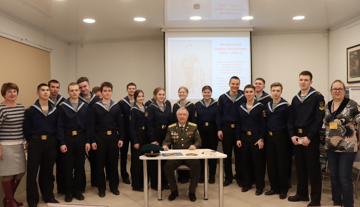 Ни шагу назад – отступать некуда! Вот девиз всех пограничников. На Звездинке, 5 – патриотические встречи. Курсанты Нижегородского речного училища познакомились с подполковником в отставке Михаилом Юрьевичем Шмагриным – представителем военной династии, которая насчитывает пять поколений пограничников! Главная тема встречи – Зимняя война, вооружённый конфликт между СССР и Финляндией 1939-1940 годов. Про эту войну мало знают, мало говорят. Она недолгой – всего 105 дней! – но стратегически важной и отмеченной множеством подвигов. Один из них совершил дед нашего гостя – Михаил Трифонович Шмагрин. Пять советских пограничников обнаружили и задержали отряд финских диверсантов, превышающий их по численности в 12(!) раз. Только представьте: