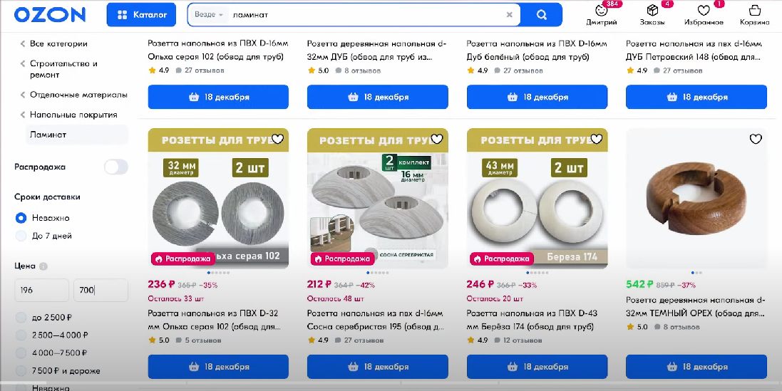 - Возможно, 500 рублей — это для озона слишком дёшево, я ставлю цену 600 рублей за квадратный метр. И ничего не меняется, выборка та же самая, ламината в ней нет по-прежнему.