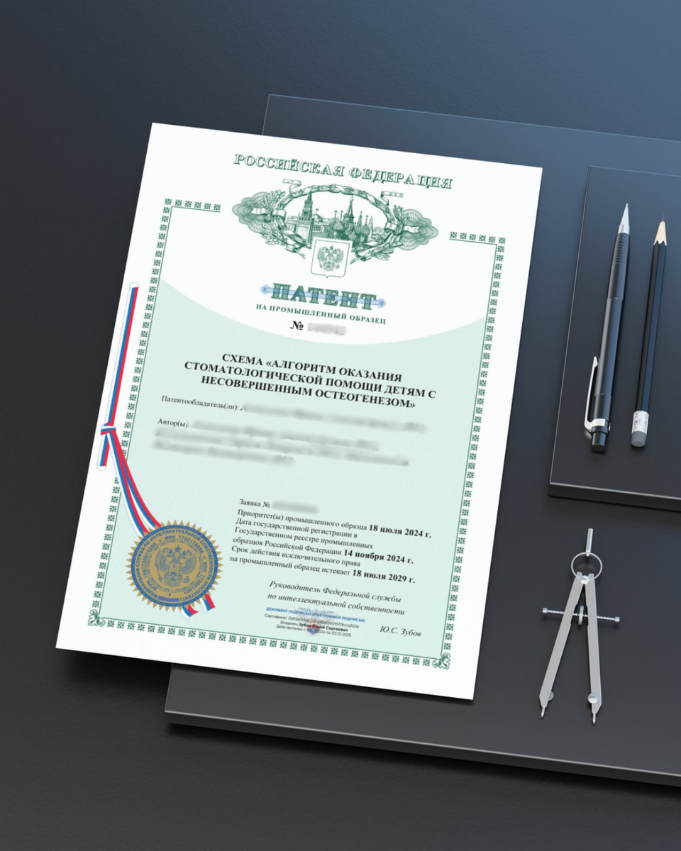 Наша команда помогла получить патент на промышленный образец — схему «Алгоритм оказания стоматологической помощи детям с несовершенным остеогенезом». Это не просто текст или методика. Это визуализированная схема, с чётко оформленной структурой, предназначенная для практического применения специалистами в области стоматологии. По закону, промышленным образцом признаётся решение внешнего вида изделия промышленного или кустарно-ремесленного производства. Это может быть не только дизайн предмета, но и схема, интерфейс, визуальный алгоритм — всё, что имеет форму и прикладную ценность. Да, если она оформлена как графический объект — с обозначением этапов, блоков, связей. И если у неё есть новизна, уникальность и практическое значение. В условиях конкуренции каждая уникальная схема или визуальное решение — это капитал. И если его не защитить, он может легко стать достоянием конкурентов. Свяжитесь с VPATENT, чтобы защитить свою интеллектуальную собственность!