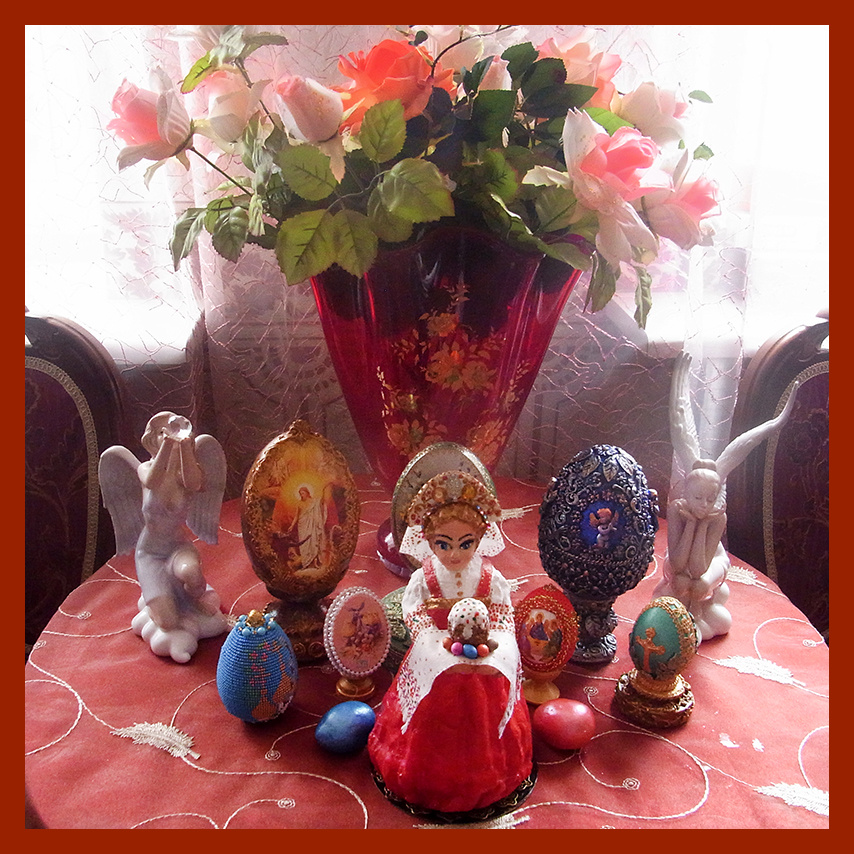 С настуающим праздником! Христос воскрес! В Брянской области ежегодно проводится конкурс пасхальных работ "Светлый праздник Пасха" Я стараюсь всегда участвовать в конкурсах. И совсем не для обязательной победы, а просто для роста мастерства. Ведь для конкурсов всегда стараешься сделать не банальное, а оригинальное изделие и продемонстрировать всем уровень достигнотого тобой мастерства. Если отбросить ложную скромность, то почти всегда мои работы замечает жюри и они приносят мне лауреатов разных степеней. Я и в своей группе в ОК "Мастерская подарков Калейдоскоп" Тоже иногда провожу подобные конкурсы. Очень жаль, что ситуация сейчас не позволяет проводить конкурсы выставки вживую, они регулярно теперь проводятся онлайн. И теперь их смотрят, в основном, сами участники и жюри. Но , "на без рыбы и рак рыба" , поэтому приходится покориться ситуации и участвовать заочно. Как вам мои работы? Однажды моя внучка 7 лет, посмотрела на мои работы перед конкурсом и насмешила нас своим выводом. Он