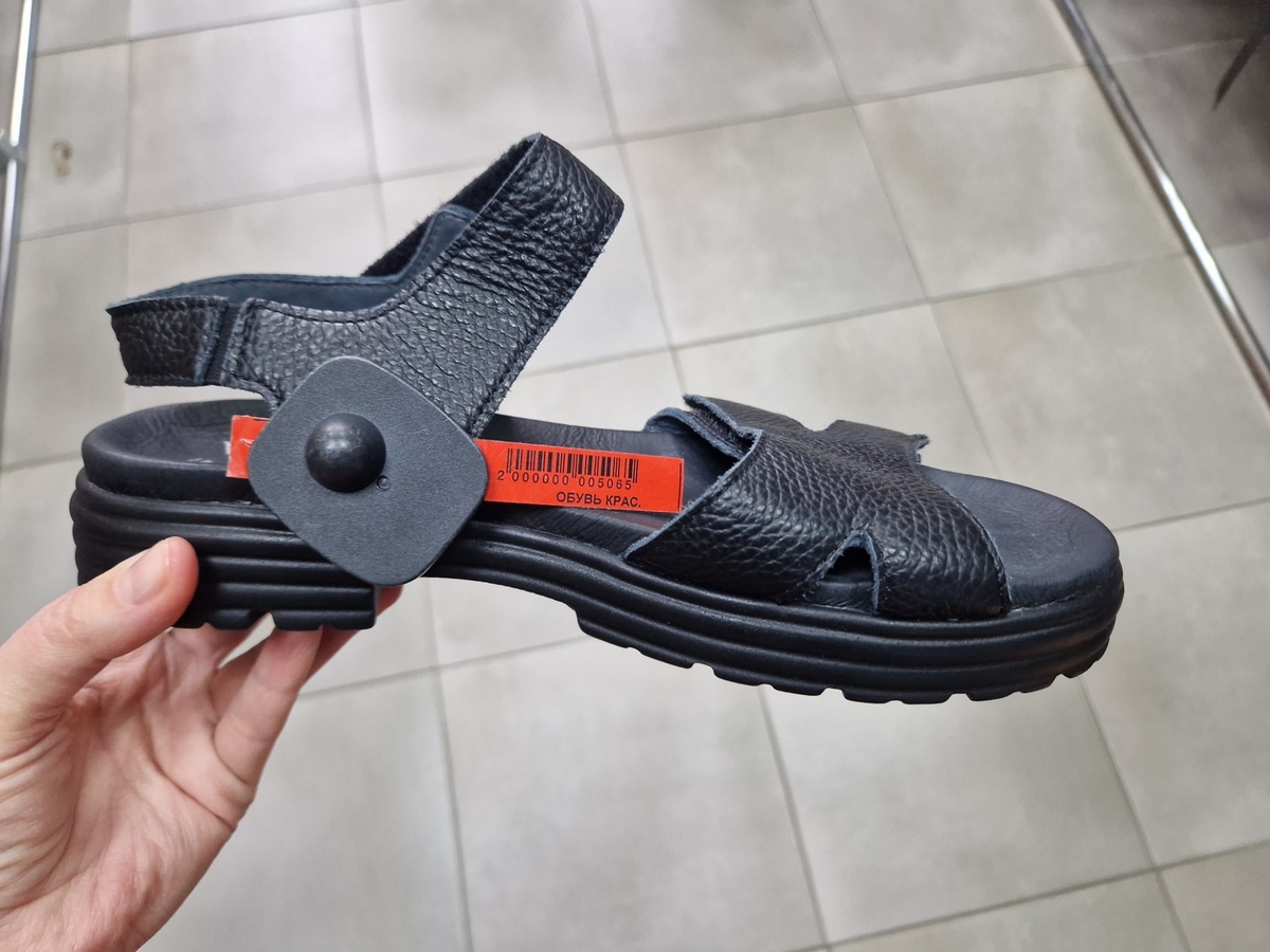 Всем привет! До конца апреля в этом секонде идёт акция "Счастливые часы": в понедельник, вторник и в среду с 12 до 14ч к скидке дня добавляется скидка в 20%. Получилось попасть в среду: с учётом акции все цены - пополам. По средам скидка 30% + акционные 20% = 50%. Смотрим, что было интересного. Из обуви понравились только кожаные сандалии от немецкого бренда Vitaform. На всё остальное как-то не захотелось обратить внимание. Шли с красным ценником, стоили 3000р. ***