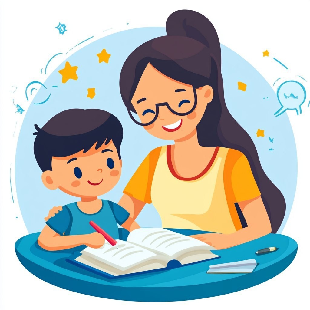 Создано на основе запроса: Flat vector illustration style image. Icon. Sticker. Topic: Helping your child study well and do homework independently --- Автоперевод: Плоский векторный иллюстрационный стиль изображение. Классно вышло? 🤔 https://dzen.ru/id/65c0c65c86e4f837c27b24d7 #ИИ #AI #нейросеть #midjourney #art