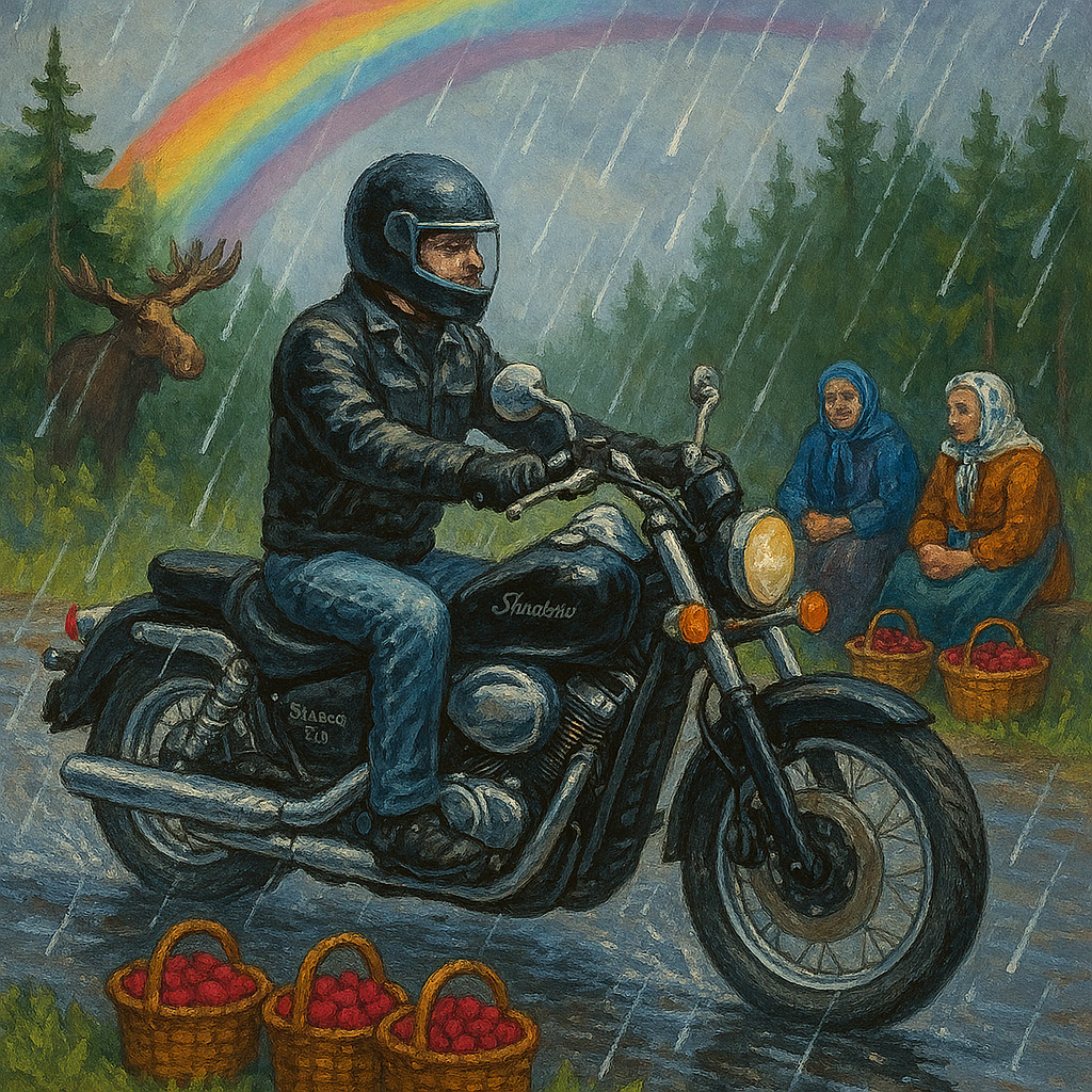 Я до сих пор помню, как заводился тот мотоцикл. Сердце стучит, словно синхронизировано с мотором. Металл ещё тёплый от солнца, хром слепит глаза, в баке — почти полный, в голове — почти пусто. Только дорога, запах бензина и этот щемящий зуд под рёбрами: “Я еду. Один. Далеко.” Мой первый дальняк был не то чтобы в другую вселенную — просто в другую реальность. Мот у меня тогда был — Shadow 750. Пыль, раскалённый асфальт и чуть подгоревшее масло — нечто родное, как запах детства. Помните этот момент, когда ветер впервые бьёт в лицо, а позади остаются не только километры, но и прежняя версия тебя? Проезжал через поля, где воздух пах луговыми цветами, потом через деревушки — где пахло печным дымом и свежим хлебом. На обочинах стояли бабушки с вёдрами малины и детвора, машущая руками, как на параде. Я чувствовал себя героем. Не из кино — настоящим. Грязным, уставшим, но счастливым. Первый дождь на трассе. Первый ночлег в лесу с пледом, растянутым между деревьями, и фонариком, который сдох в