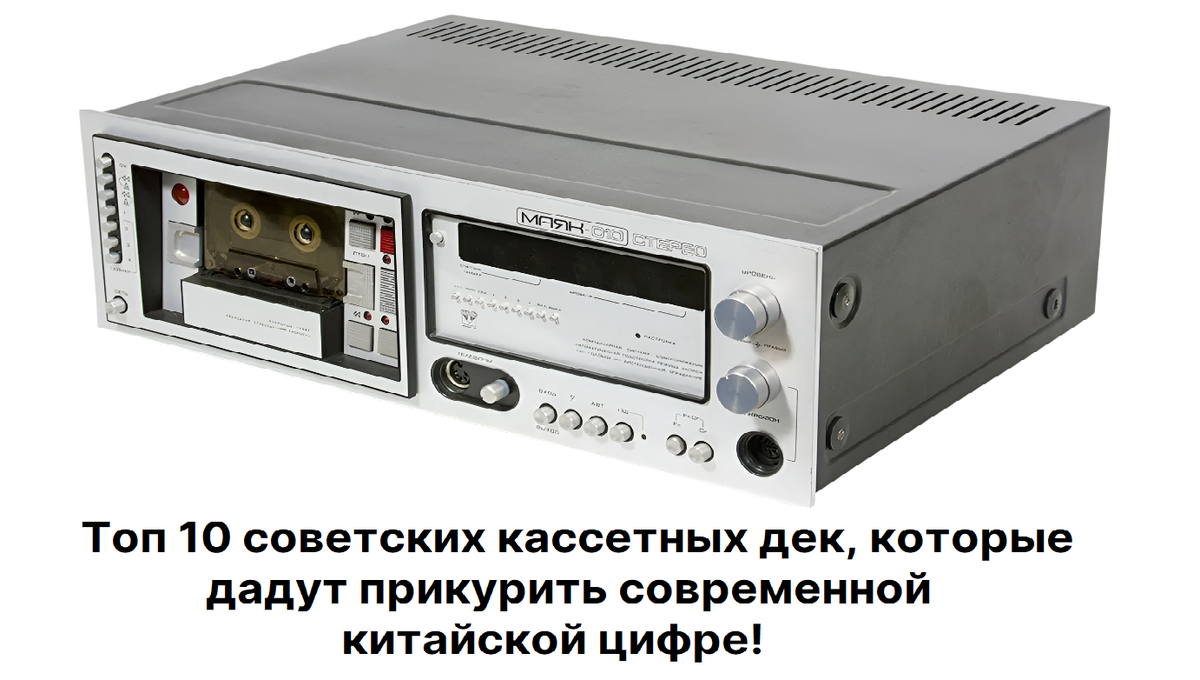 Самый дорогой советский кассетный магнитофон, «Маяк-010-стерео» в 1983 году стоил невероятные 1 900 рублей. Детище одноименного Киевского завода обладало целой россыпью функций: от электронного счетчика ленты и автостопа – до компандерного шумоподавления. Возможностей по микшированию и редактированию записей тут было просто море – а, учитывая развернутую индикацию уровня средних и пиковых уровней записи, автоматическую подстройку подмагничивания, кварцевую стабилизацию скорости и комплектный беспроводной пульт ДУ, работа с «Маяк-010-стерео» казалась на удивление простой и элегантной. Дека получила шильдик «высший класс техники», оснащалась тремя головками, имела закрытый тракт и гарантировала АЧХ от 31,5 до 18 000 Гц. Весил аппарат 10 кг; тираж устройства составил примерно тысячу экземпляров.