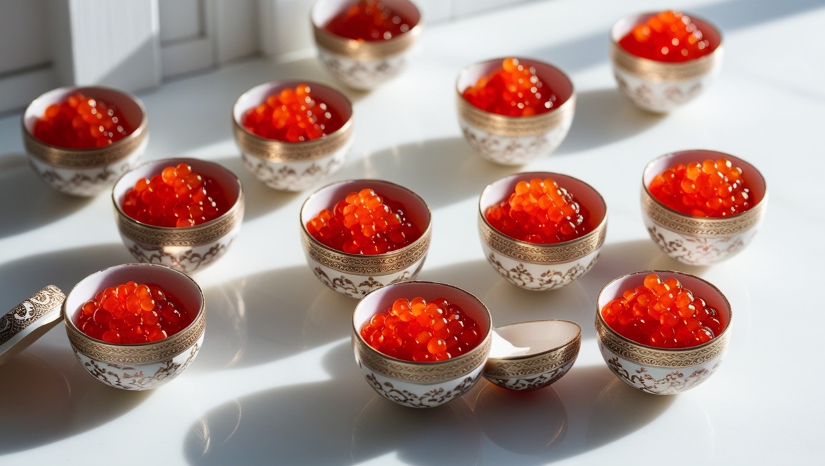 - Икра (красная или чёрная, можно использовать и имитированную) — 2–3 ч. л.