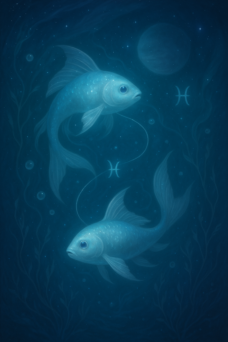 Рыбы – двенадцатый знак зодиакального круга, олицетворяющий глубокую чувствительность, интуицию и творческое воображение. Управляемые Нептуном (а также традиционно Юпитером) и относящиеся к стихии Воды, Рыбы ассоциируются с образом двух рыб, плывущих в противоположных направлениях, что символизирует внутреннюю двойственность, мечтательность и склонность к эмоциональному самовыражению. Этот знак часто характеризуют как отзывчивый, сострадательный и мечтательный, что отражается как в личных качествах, так и в мировоззрении его представителей.