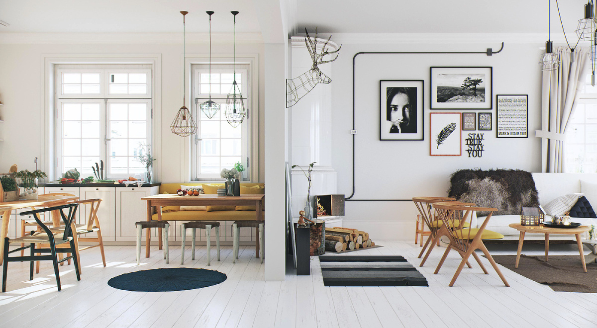 В скандинавском интерьере нет места случайным деталям. Каждый предмет мебели – это воплощение функциональности и лаконичности. Прямые линии, простые формы, отсутствие вычурного декора – вот его основные черты. Удобный диван, лаконичный стол, практичные полки – все подчинено принципу "меньше значит больше". Если плитка – то вытянутая "кабанчик" или строгая геометрия. Узоры, если и присутствуют, то простые и ненавязчивые: ромбы, круги, крупные цветочные мотивы. Они могут украшать подушки, обои или постеры, добавляя интерьеру немного игривости и характера.