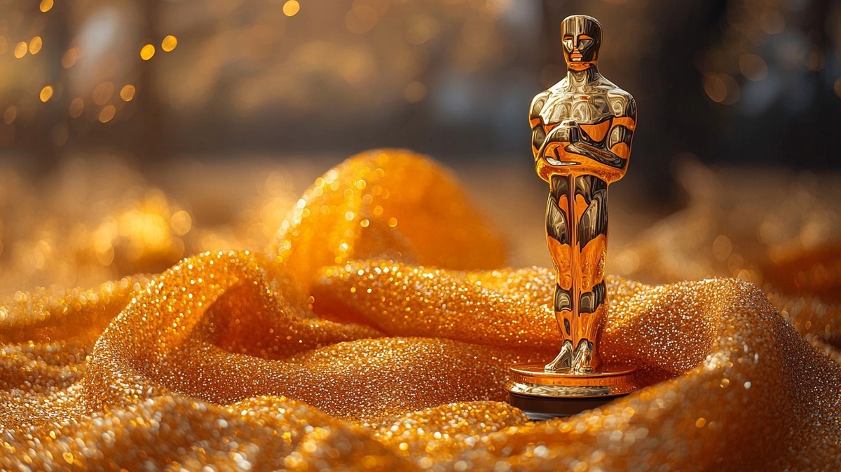 Создано на основе запроса: Bright Oscar statue in an orange scenery