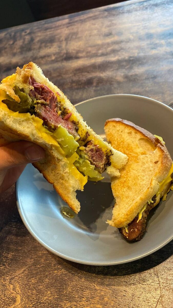 Друзья! Наше мясо можно сочетать в блюдах, бутербродах и закусках. 🔥 На заметку👍🏻 Рецепт крутого сэндвича, который унесет вас в космос🚀 Пожаренный хлеб Горчица Сырный соус Маринованный огурец Пастрами говядина