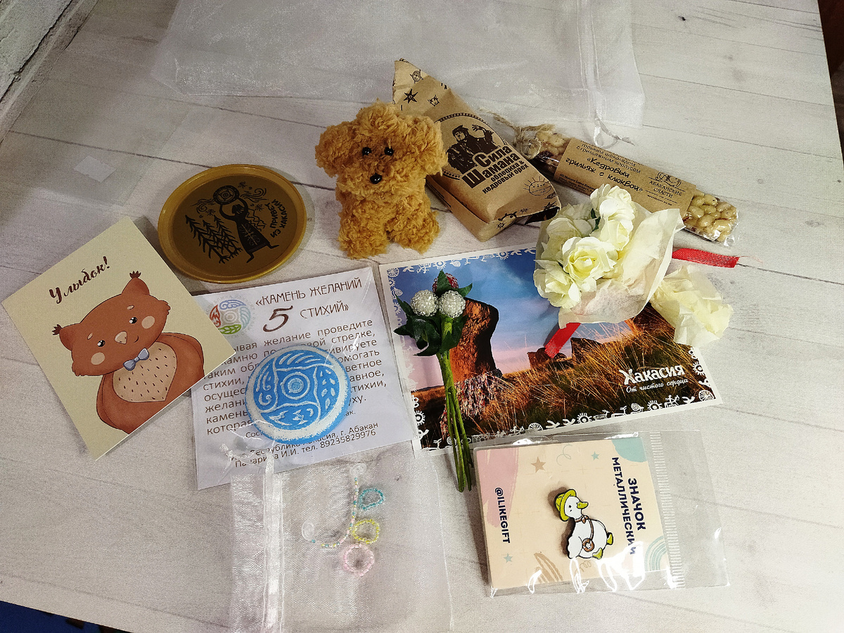 Среди подарков были аутентичные сувениры из Хакасии, родины Юли: интересный магнит с шаманом, открытка с красивыми видами, которые я видела только на картинках, а ещё вкуснейшие сладости😍