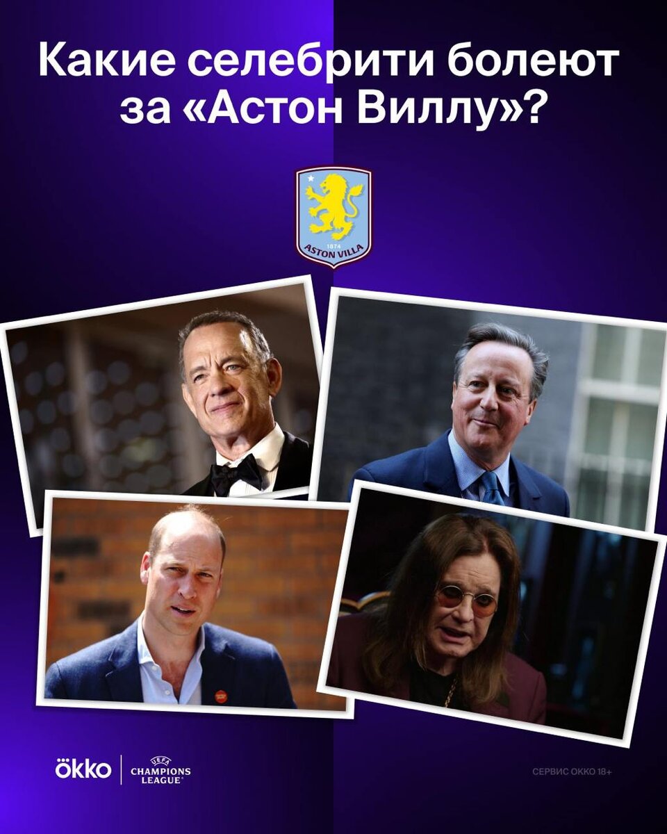 Что объединяет Тома Хэнкса, Оззи Осборна, Принца Уильяма и Дэвида Кэмерона? Они все болеют за «Астон Виллу»⚽️ Сегодня у бирмингемцев будет звездная поддержка. Сможет ли «Вилла» совершить чудо? 🔥 — да, команда Эмери выйдет в полуфинал 👎 — нет, «ПСЖ» слишком хорош