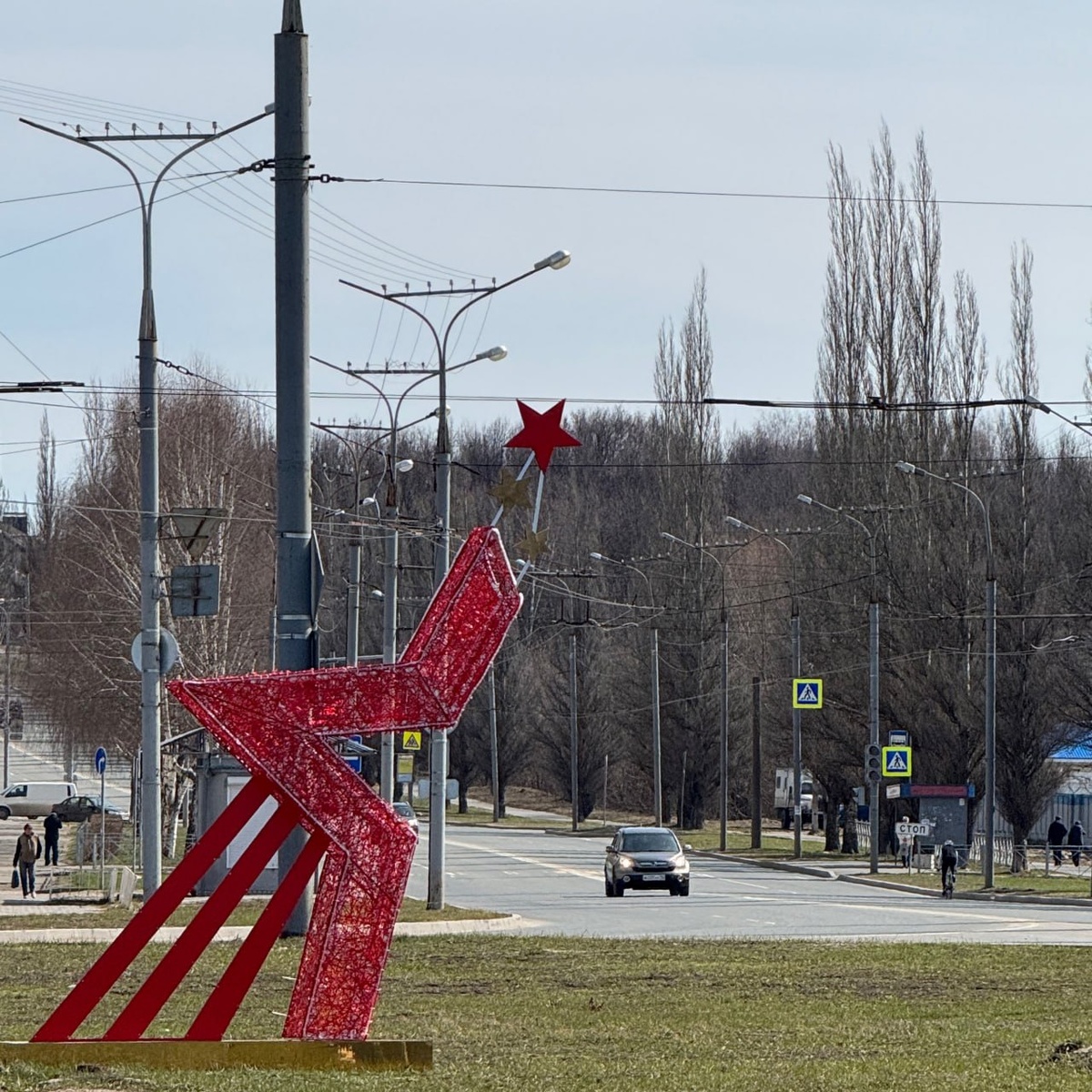 ⭐️Сегодня в Йошкар-Оле на кольцевом перекрестке улиц Карла Либкнехта и Лебедева рабочие занялись установкой еще одной фигуры-звезды ко Дню 80-летию Великой Победы. Первая же красная звезда-арка со светодиодной иллюминацией появилась в городе вчера - в сквере имени Наты Бабушкиной. Позже установят и остальные 3 фигуры на других локациях, сообщает администрация Йошкар-Олы.