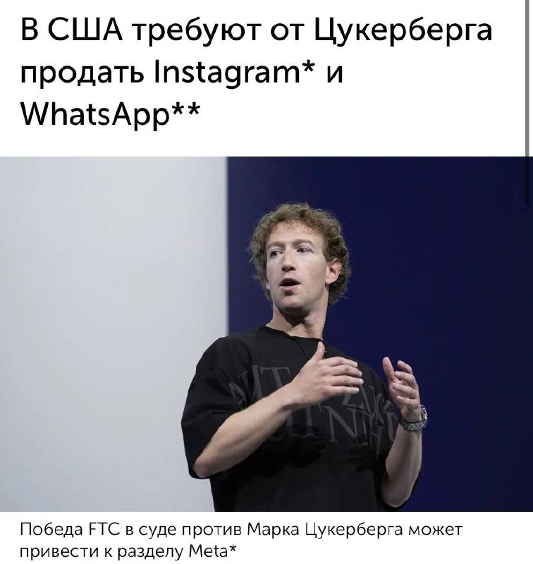 Власти США готовятся отнять у Цукерберга Instagram и WhatsApp 👀 Новый президент даже угрожал посадить Цукерберга в тюрьму.. В 2025 г. директор Meta всячески угождает Трампу, жертвует ему деньги, а также снимает видео и раздает интервью, в которых рассказывает о своих невыразимых страданиях при Джо Байдене 🥹 Если Цукерберг добьется лояльности у президента США, это может помочь урегулировать иск в пользу Meta и оставить Instagram и WhatsApp в составе ИТ-компании Meta. Давайте будем следить, ибо доход многих зависит от функционирования Instagram. Да, там все ещё можно продавать. Но вы не слушаете и продавайте только в ВК и ТГ 😀