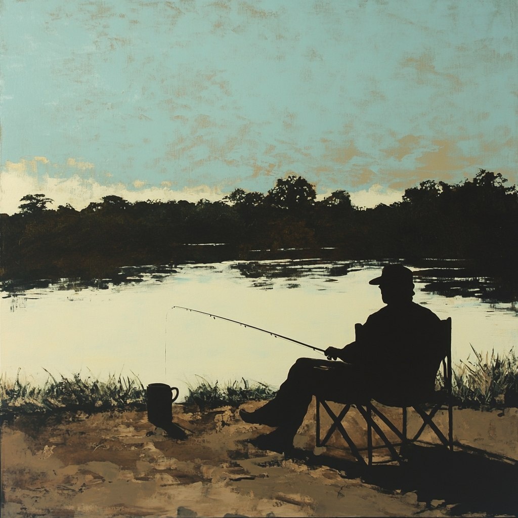 Создано на основе запроса: He paints a landscape of the Argentino River, with a lot of vegetation in the background. It shows the silhouette of a fisherman with his rod, fishing from the riverbank. The silhouette of a beach chair and a mate cup with a coffee pot can also be seen. Cool colors: brown, light blue, and green. Acrylic on canvas. --- Автоперевод: Он рисует ландшафт реки Аргентино, с большой растительностью на заднем плане. Какое твое впечатление? 🤔 https://dzen.ru/id/65c0c65c86e4f837c27b24d7 #ИИ #AI #нейросеть #midjourney #art