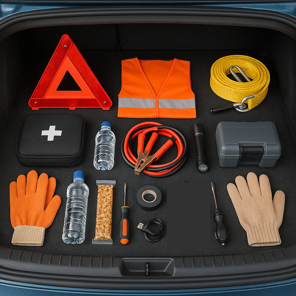 Каким бы новым и надёжным ни был автомобиль — в дороге всё может случиться: от прокола колеса до внезапного дождя или простуды. Чтобы не оказаться беспомощным вдали от дома, стоит собрать компактный, но продуманный набор вещей, которые могут пригодиться «на всякий случай». ✅ Запаска + домкрат + баллонный ключ
