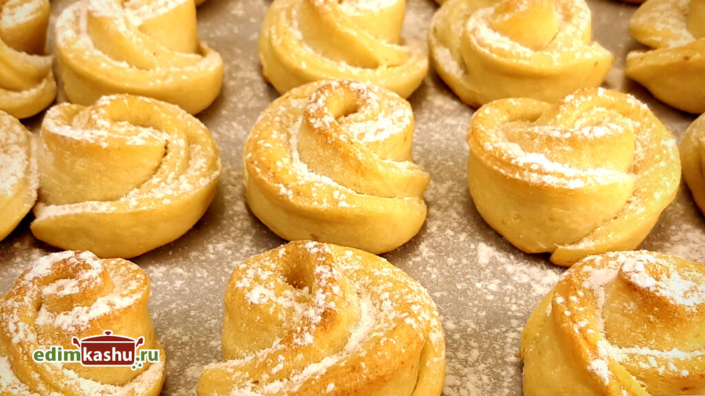Творожное печенье розочки — простая и вкусная выпечка к чаю. Рецепт творожного теста для этих печений необыкновенно легкий и быстрый. Такую выпечку не составит труда приготовить в обычный будний день. И на праздничном столе она будет выглядеть эффектно. Ингредиенты: