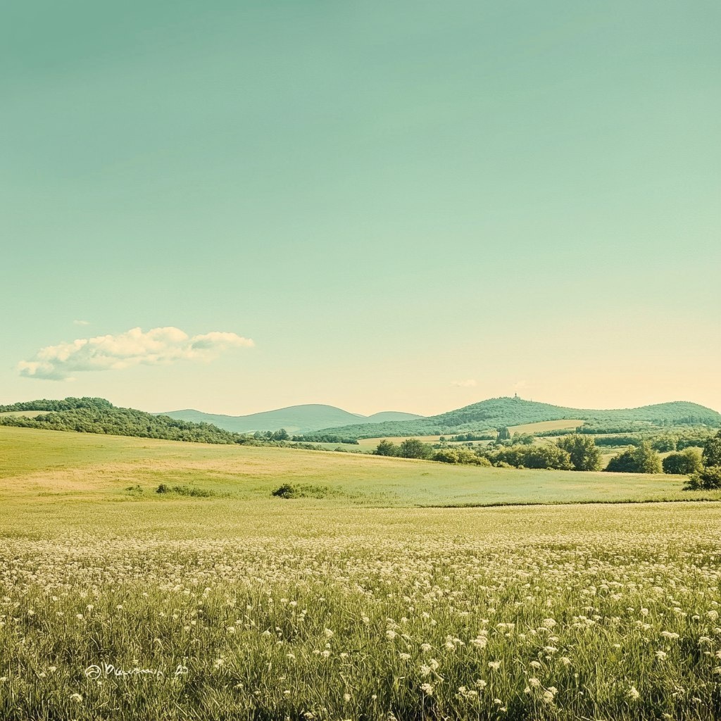 Создано на основе запроса: HD, Hyper relistic image, green landscape with clear sky, vintage style colors