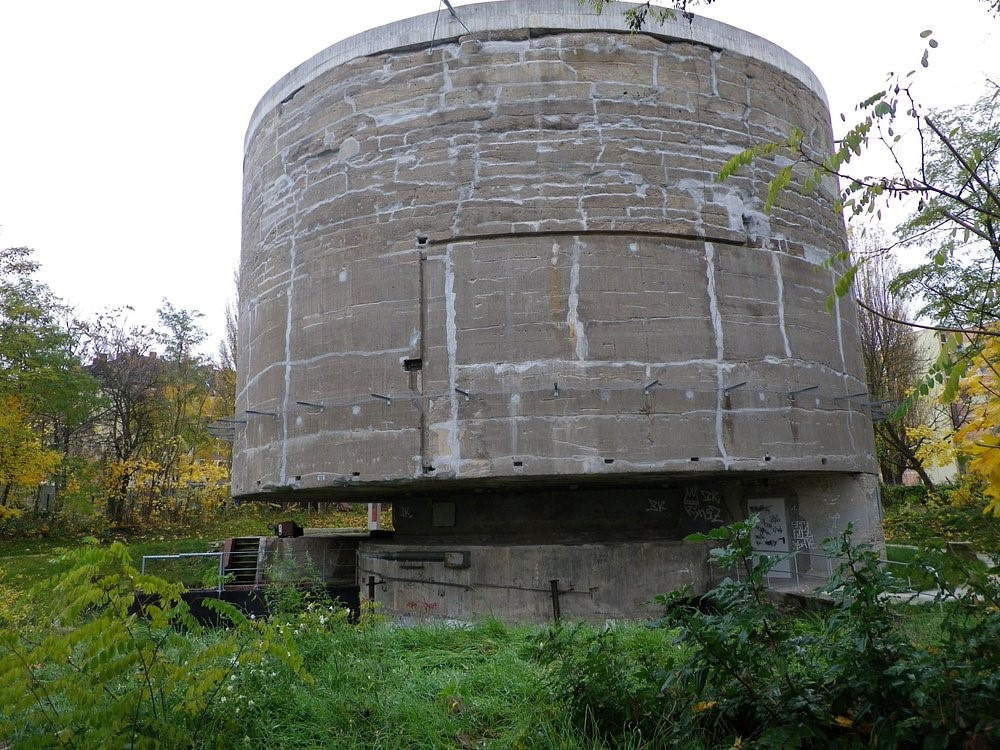 Взгляды жителей и гостей района Темпельхоф в Берлине определённо притягивает необычное сооружение, находящееся на перекрёстке улиц Генерала Папе и Лёвенгардтамн, представляющее собой приподнятый над землёй сплошной бетонный цилиндр, напоминающий не то очень толстый гриб, не то ручную гранату-колотушку, воткнутую в землю на всю ручку. Его история проста и прозаична, но в тоже время красива своей показательностью, ведь такое сооружение не могло быть построено в другой исторический период, кроме как в эпоху Третьего Рейха. В 1938 году генеральный инспектор по застройке Берлина главный архитектор Гитлера Альберт Шпеер, пока ещё не ставший рейхсминистром вооружений и работавший по специальности, запустил создание проекта по коренной перестройке города в новую имперскую столицу – Германию. Её центром являлись бы циклопические постройки, выражающие собой силу и мощь великогерманского рейха. Доминантой города планировалась Ось Север-Юг – шоссе шириной 120 м и длиной 40 км, соединяющее два вокз