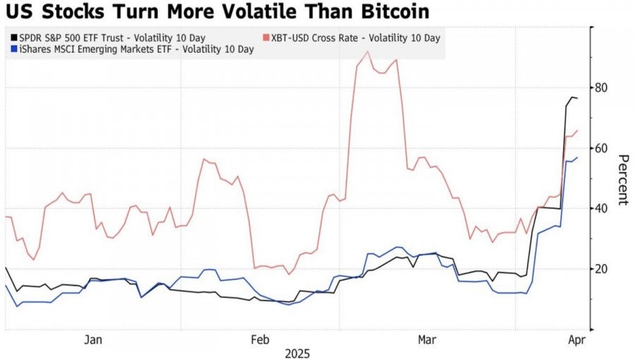 https://basechop.ru/wordpress/?p=38557 Свершилось! Широкие колебания рынка акций США после Дня независимости Америки привели к тому, что биткойн перестал быть самым рискованным активом в мире. С одной стороны, это хорошо – инвесторам стало поспокойнее. С другой, не очень. Ранее BTC/USD покупали просто потому, что пара росла, сейчас трейдер трижды подумает, прежде чем это сделать. Динамика волатильности рынков акций США, развивающихся стран и биткойна Из-за неопределенности политики Белого дома американские активы превращаются в токсичные, а то что еще вчера было спасительной гаванью, распродается на фоне слухов о сокращении Китаем своих запасов казначейских облигаций США. И пусть ярые сторонники биткойна считают, что в долгосрочной перспективе он не будет реагировать на макроэкономику, однако даже они признают – сейчас реагирует. И связано это с тем фактом, что подобные события происходят раз в поколение. Не проявлять к ним чувствительность невозможно. Действительно, корреляция межд