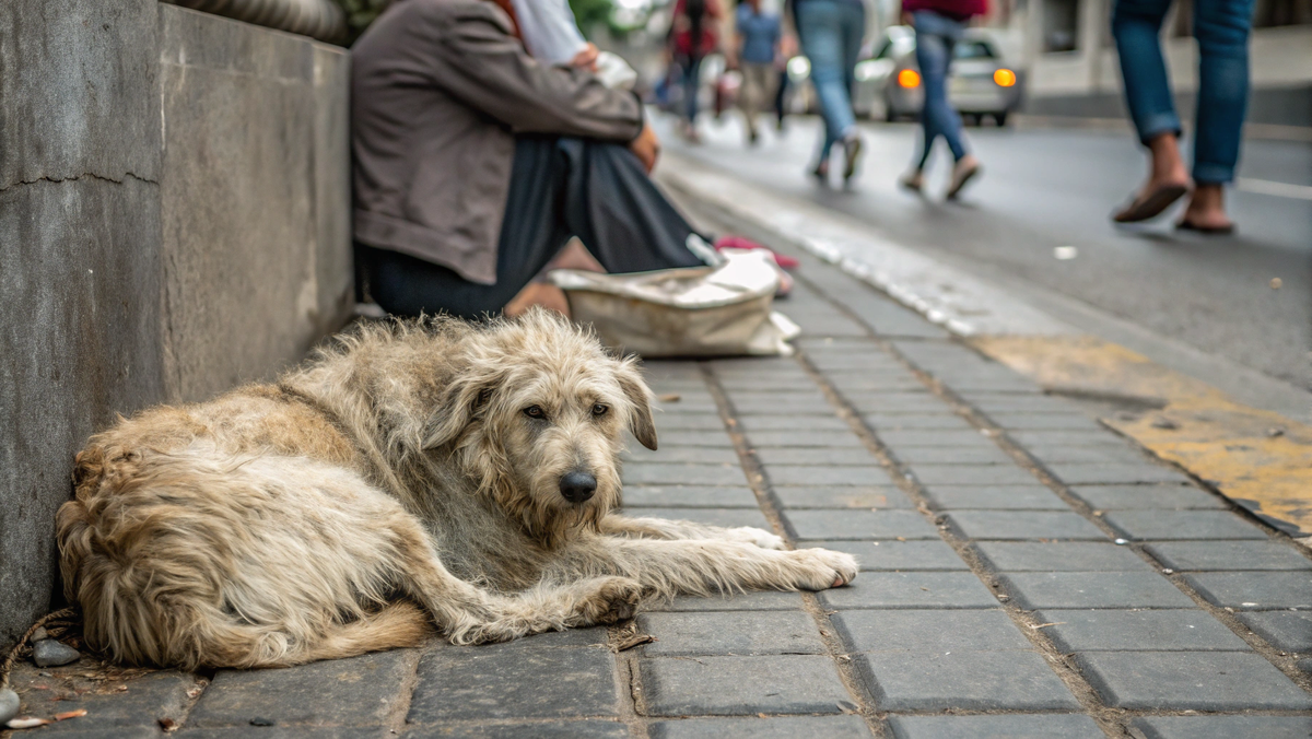 Светофор наконец переключился, и поток людей потянулся через дорогу. Олег шагнул вперёд, но что-то заставило его обернуться. Собачьи глаза. Они смотрели прямо на него — тусклые, без проблеска надежды или любопытства. Как у человека, который давно перестал ждать перемен.
