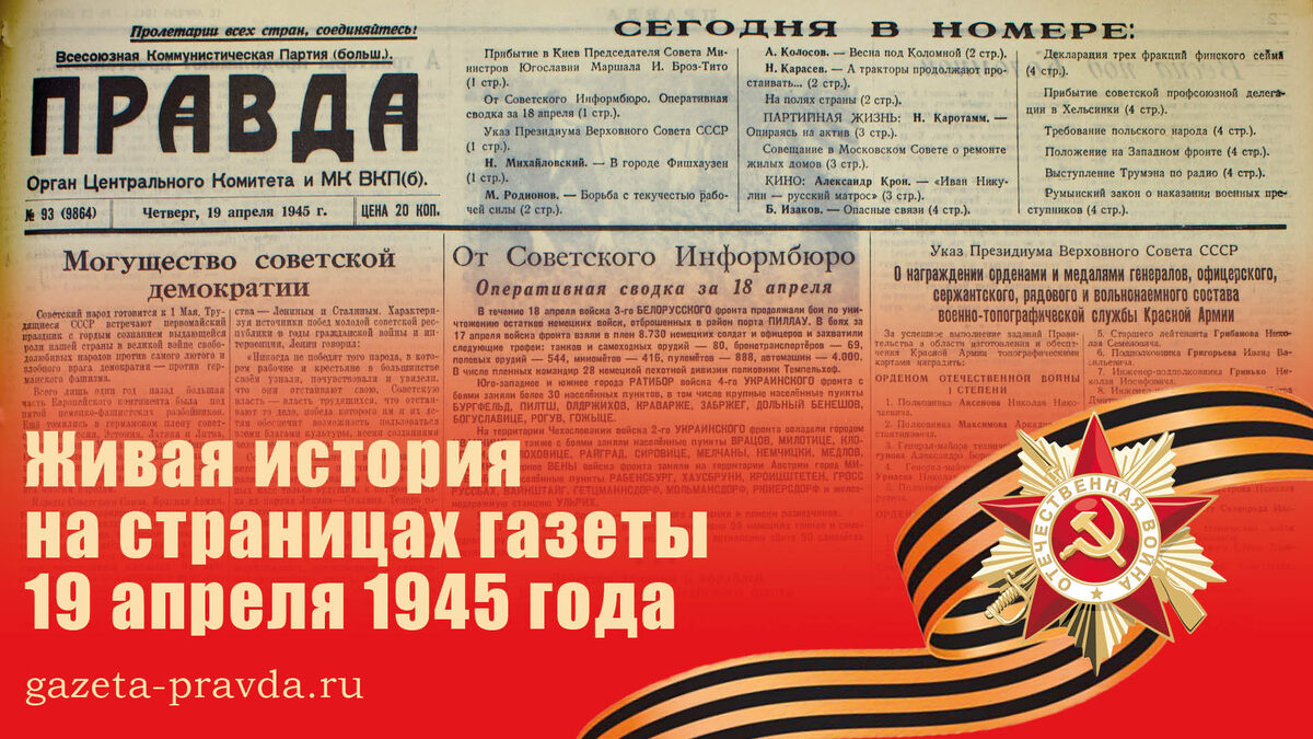 19 апреля 1945 года, четверг, № 93 (9864).