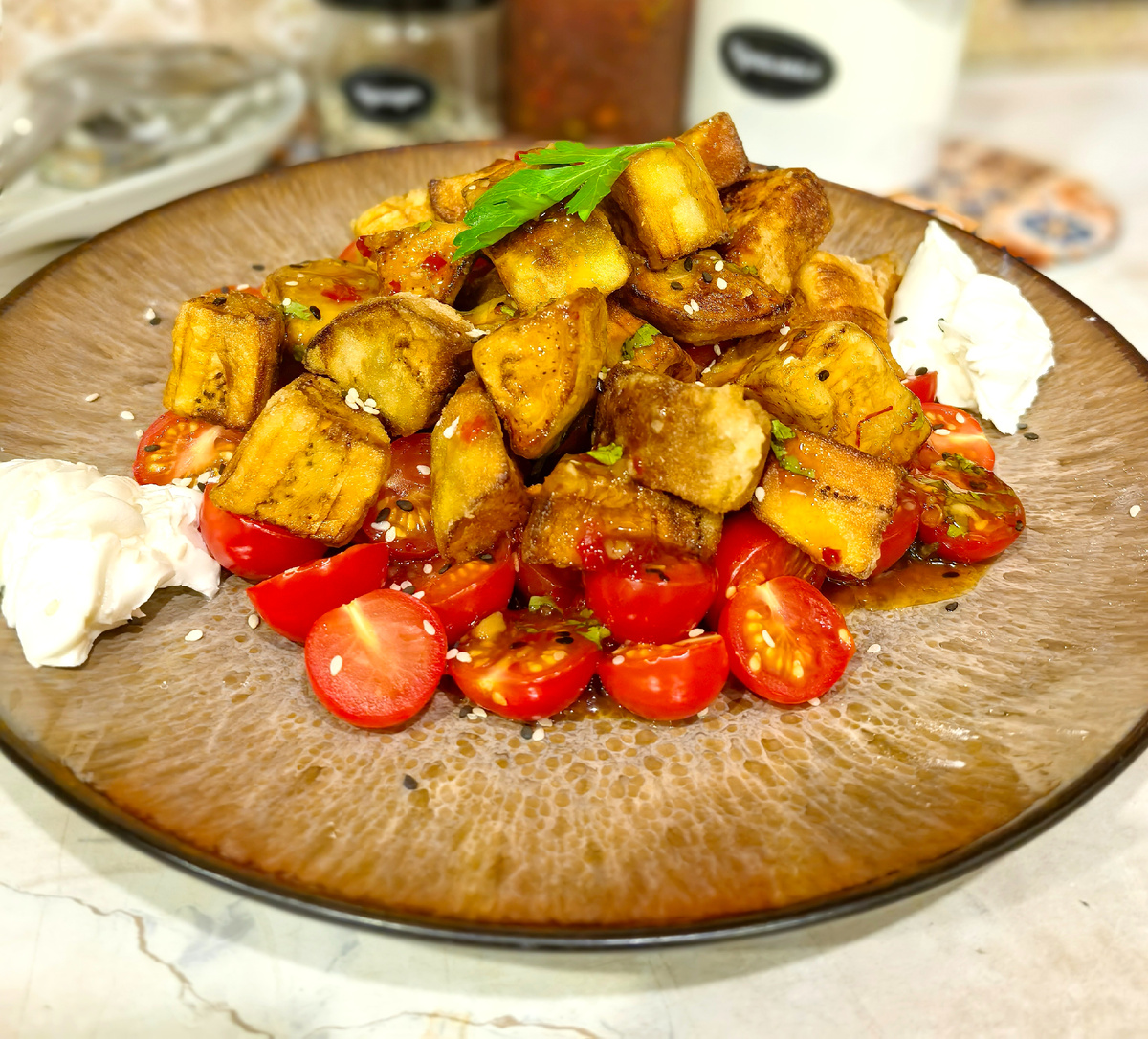 Как приготовить самый вкусный Абхазский теплый салат с баклажанами и помидорками🍆🍅