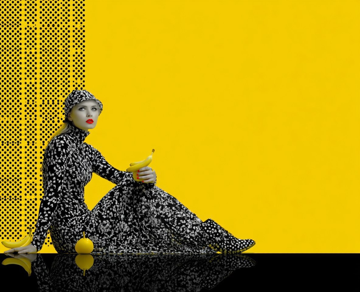 Создано на основе запроса: top model in haute couture and accessories inspired by contemporary art, banana for scale, designed by issey