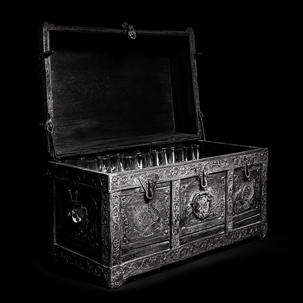 Создано на основе запроса: realistic photograph black and white of a chest from the early 900s or even older. The chest is mainly dark wood and details of metal. Te chest is semi open and inside it works as glass/cup/bottles storage and holder --- Автоперевод: Реалистичная фотография черно -белая сундук с начала 900 -х годов или даже старше. Красиво выглядит? 🤔 https://dzen.ru/id/65c0c65c86e4f837c27b24d7 #ИИ #AI #нейросеть #midjourney #art