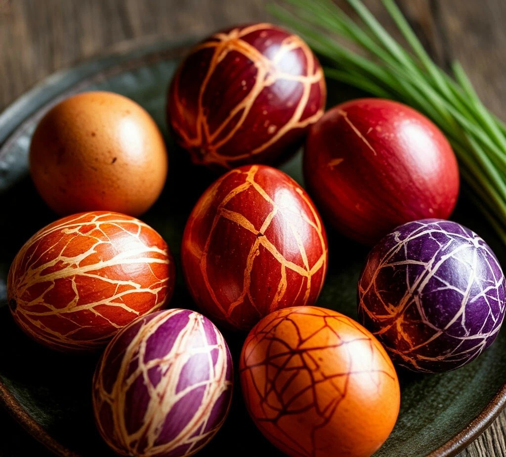 Пасхальные яйца, окрашенные луковой шелухой, – это не только традиция, но и возможность создать настоящие шедевры! Натуральный краситель даёт богатую палитру – от золотисто-жёлтого до глубокого красно-коричневого, а с помощью простых хитростей можно получить изысканные узоры.