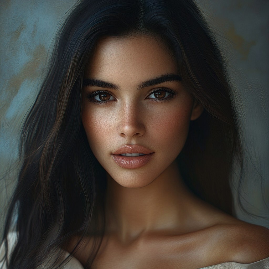 Создано на основе запроса: Ultra-realistic portrait of a 24-year-old woman, close-up, highly detailed. She has long, flowing dark brown hair and warm brown eyes. Her features are soft and symmetrical with a gentle expression. She has a small, elegant nose, smooth skin with a natural glow, and slightly parted lips with a hint of a smile. She is dressed in a tasteful, fashionable outfit perhaps an off-shoulder blouse or a light satin top. The lighting is cinematic, studio-style with soft highlights and shadows, and a shallow depth of field creates a beautiful bokeh background. Captured in 8K resolution, styled like a high-end fashion magazine photoshoot Vogue or Harper’s Bazaar. Focus on realism, elegance, and natural beauty. --- Автоперевод: Ультрареалистичный портрет 24-летней женщины, крупным планом, очень подробно. Отлично вышло? 🤔 https://dzen.ru/id/65c0c65c86e4f837c27b24d7 #ИИ #AI #нейросеть #midjourney #art